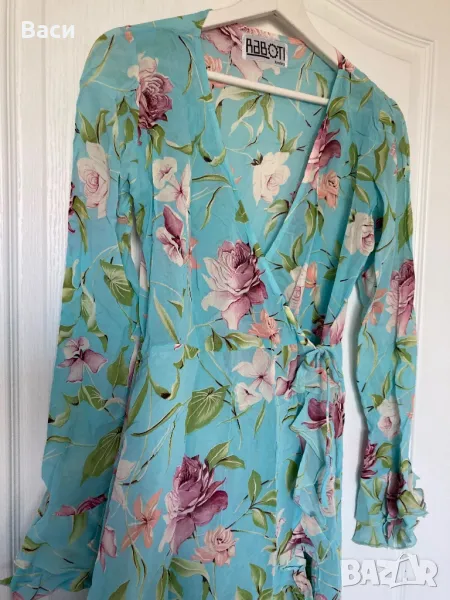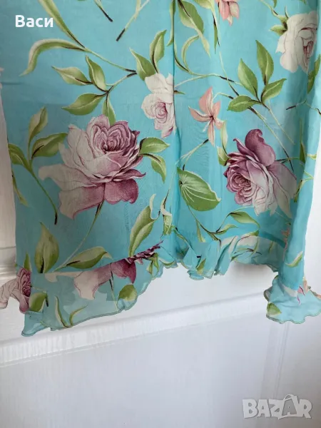 Много женствена ,красива и романтична. Цветовете са пъстри с флорални мотива. Материята е вискоза . Лека ,ефирна и приятна на допир.