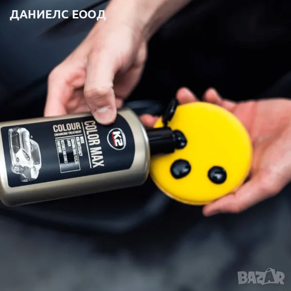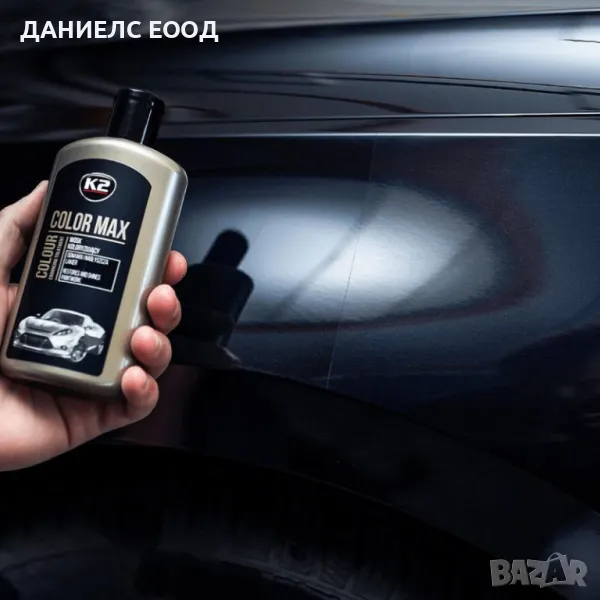 Черна течна вакса K2 Color Max за автомобили, лесна за нанасяне, идеална за ефективно покриване на малки драскотини. Видимо подобрява цвета на полираната повърхност и придава гланц. Това е автомобилна вакса, подходяща за използване върху по-стари бои лакове, които са загубили блясъка си за всички бои включително и металик.