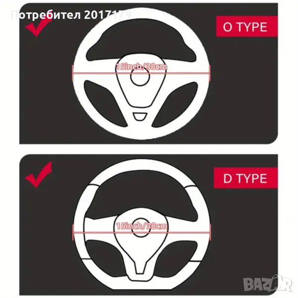 калъф за волан кожа ЗА шиене черен размер 38см → Обява 46888182