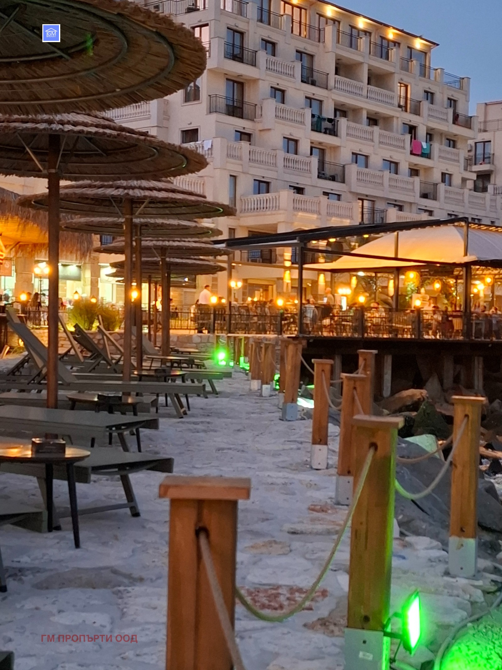 Жилищния комплекс с ограничен достъп с територията която е 4 256 кв.м. От комплекса до плажа са 250 м. Вътре в комплекса са разположени два жилищни блока . Всеки вход има асансьор.