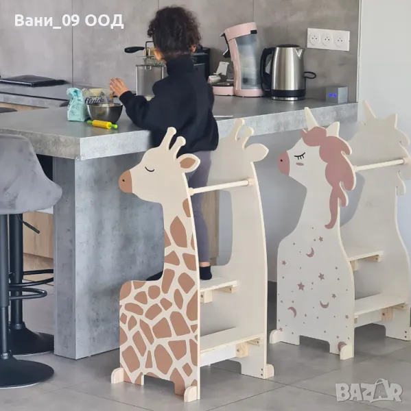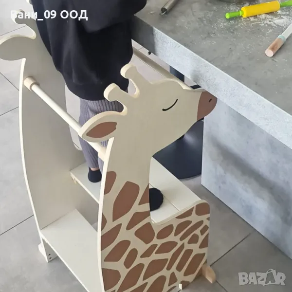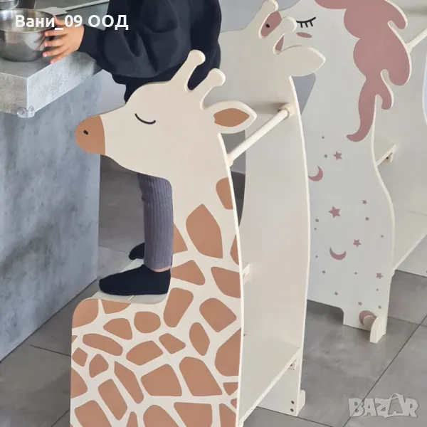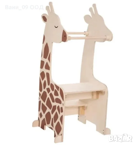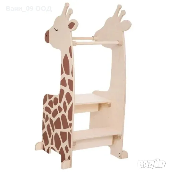 Помощна детска кула Монтесори жираф, изработена от масивна дървесина, 47.5/55/100 см