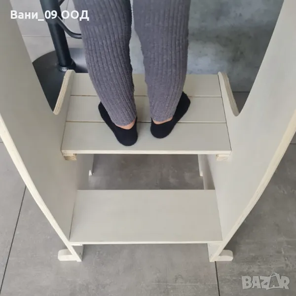 Кухненската помощна кула е проектирана в съответствие с основния принцип на педагогиката Монтесори за развиване независимостта на детето и активното му участие в ежедневните задачи у дома.