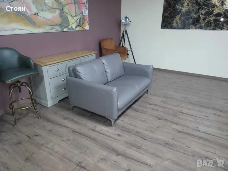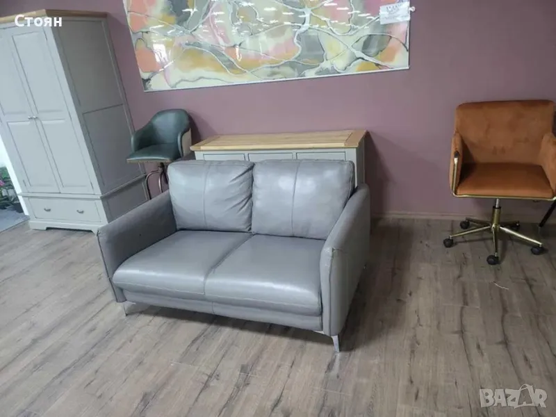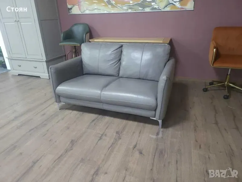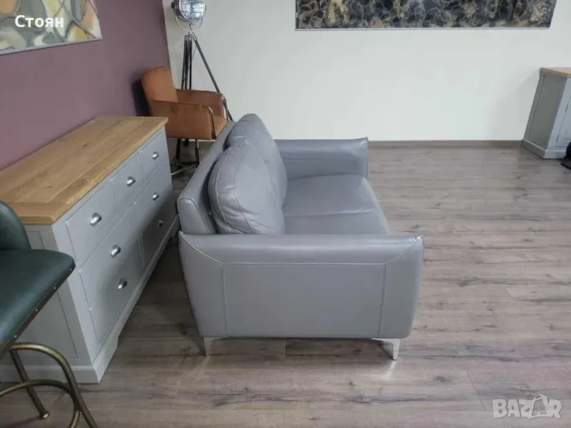 ПРОМОЦИЯ!!! Дизайнерски сив кожен диван двойка → Обява 46889449