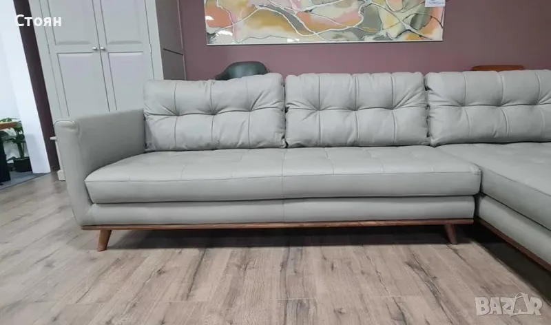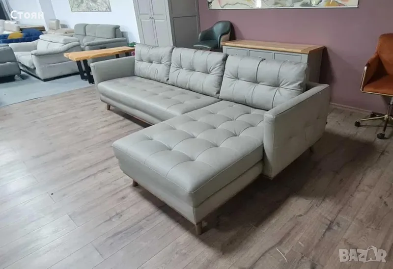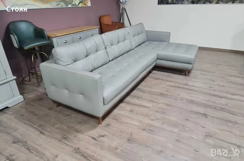 ПРОМОЦИЯ!!!Сив кожен ъглов диван Dwell Albi