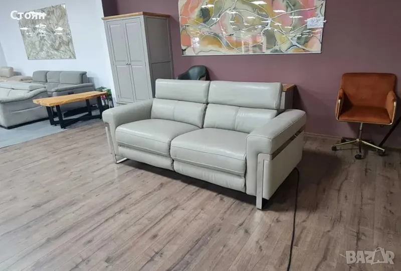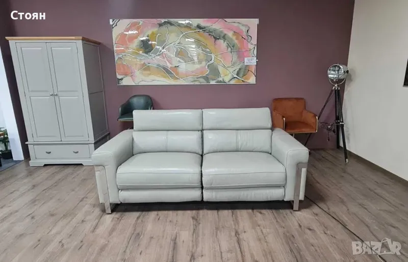 ПРОМОЦИЯ!!! Сив кожен диван тройка "Moreno" с електрически релаксиращ механизъм
