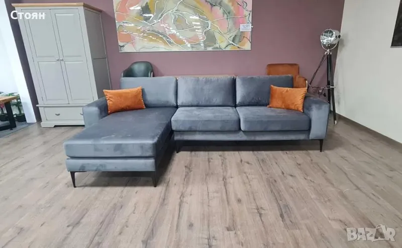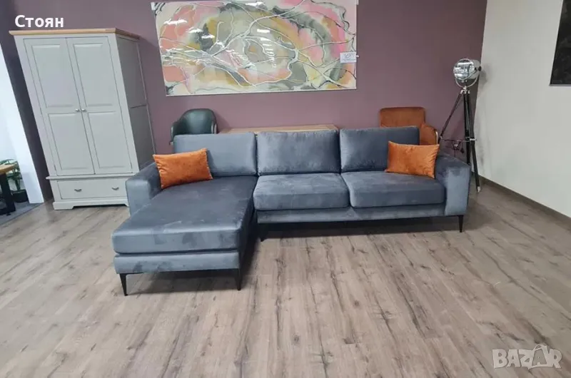 ПРОМОЦИЯ!!! Сив ъглов диван от плат Merlin