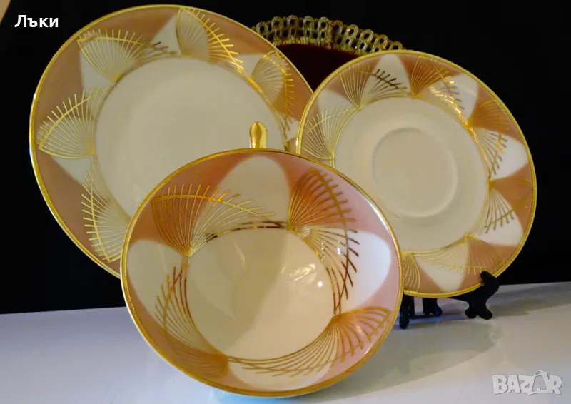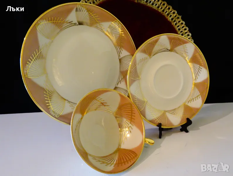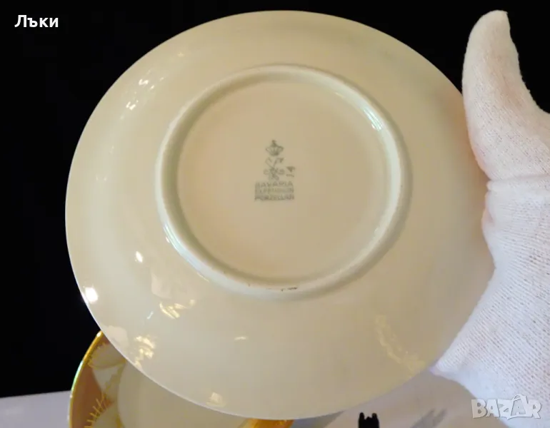 за кафе или чай,фин баварски порцелан,ръчно декориран с 24 карата злато.Всички части са маркирани Bavaria Elfenbein Poezellan,произведени 1940 г.