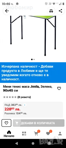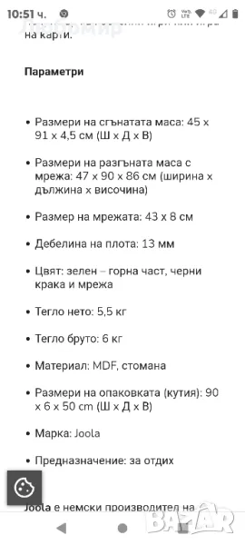 Този продукт не е устойчив на атмосферни влияния.Искате ли да подобрите уменията си по тенис на маса, но имате малко място? Масата за тенис на маса JOOLA MINI GREEN ще бъде идеална за това!