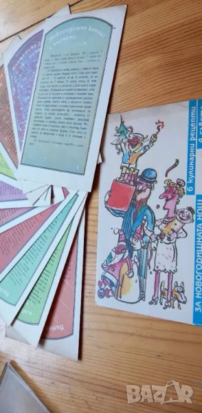 Комплект от десет картички с шест рецепти за новогодишна трапеза и четири съвета. Картите се прибират в пластмасово калъфче. Съставител на комплекта е Росана Паунова. Художник е Иван Веселинов. Издадени са през 1898г. и са в отлично състояние.