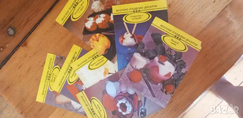 Седем карти със седем рецепти за приготвяне на млечно-плодови десерти. Цената е за седемте карти заедно. По отделно цената е 0.50лв за една карта.