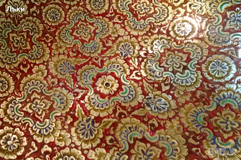 сервиране,майсторска ръчна изработка от масивен бронз със златен блясък.От вътре е декорирана с изумително красиви релефно гравирани орнаменти,подчертани