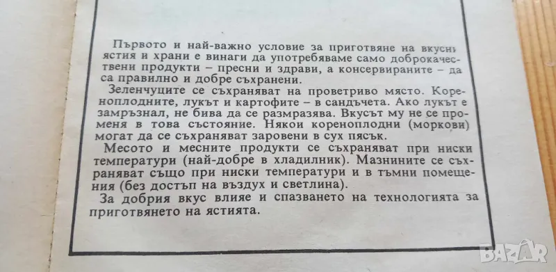 Книгата е издадена през 1991г, меки корици, съдържа 108 страници с много и разнообразни готварски рецепти. Съдържанието е на снимките. Книгата е в отлично състояние.