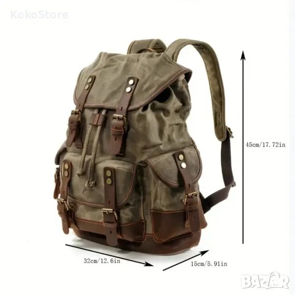 Водоустойчива ретро раница, подходяща за ежедневна употреба, идеален избор за пътуване. Предлага се в различни цветове, размерите са показани на една от приложените снимки.