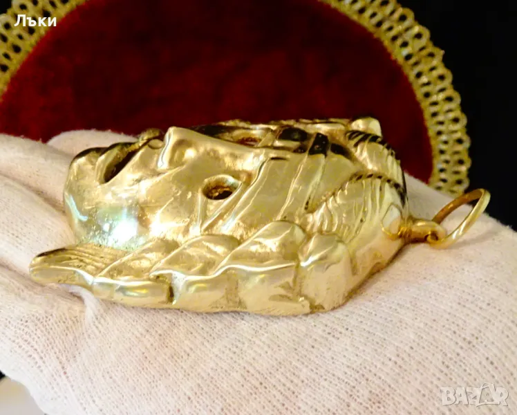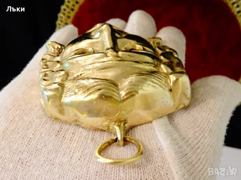 качествен бронз със златен блясък.Размер 10.5 х 7 х 1.8 см.Тегло 170 гр.