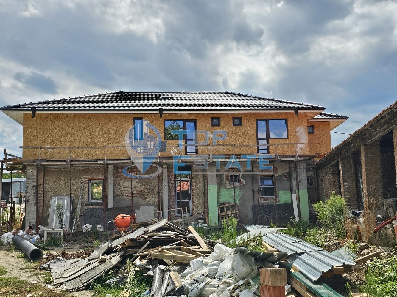 Сградите са на етап акт 14, като по проект са предвидени да функционират, като къща за гости след завършването им. Първата сграда е с площ от около 300 кв.м. разпределени между два етажа. Приземният етаж е с площ от около 150 кв.м и се състои от голяма трапезария с кухненски бокс и тоалетна, студио (състоящо се от 2 спални с обща баня и тоалетна), перално помещение. Конструкцията е масивна стоманобетонова, а степента на завършване е: изградено ВиК, окабеляване, шпакловка, монтирани дограми. Вторият е с площ от около 150 кв.м, разпределени между шест спални със самостоятелни санитарни възли. Конструкцията е дървена по западен способ, а степента на завършване е: изградено ВиК, монтирана външна дограма. Сградата е с направен дренаж и отводняване, както и изолация. В съседство е разпложена едноетажна тухлена сграда с площ от около 200 кв.м, която е планирана да разполага с четири спални със самостоятелни санитарни възли и две трапезарии. В близост е изградена тухлена постройка на груб строеж с площ от около 30 кв.м, предвидена за барбекю. Дворното място е площ от 1300 кв.м, равно и оградено, а достъпът е целогодишен по асфалтов път. Номер на оферта: 2720. We speak English and German.