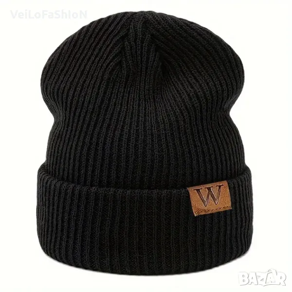 Нова детска зимна шапка в черен цвят с етикет W, подходяща за есенно-зимния сезон. Шапката е подходяща за деца от 7 до 16 години с обиколка на главата 55-60см