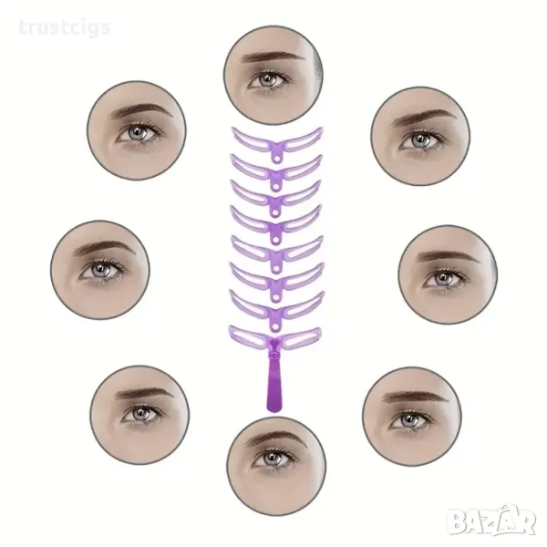 8 уникални дизайна: Комплектът включва 8 различни шаблона с разнообразни форми, така че да можеш да избереш този, който най-добре отговаря на твоите черти на лицето и желания стил.
