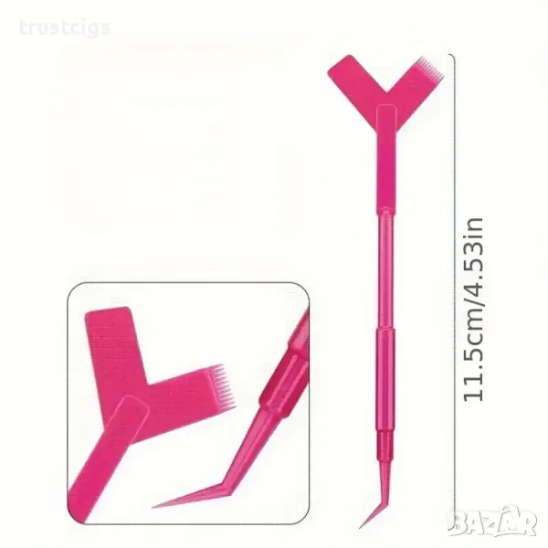 Двойна функционалност: Едната страна, оборудвана с микроскопични зъбчета, нежно отделя всяка мигла, докато другата, гладка повърхност, осигурява сигурно прилепване към формата.