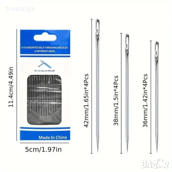 Лесно вдяване: Специалният отвор на иглата позволява на конеца да се плъзне гладко и без усилие, спестявайки ви време и нерви.