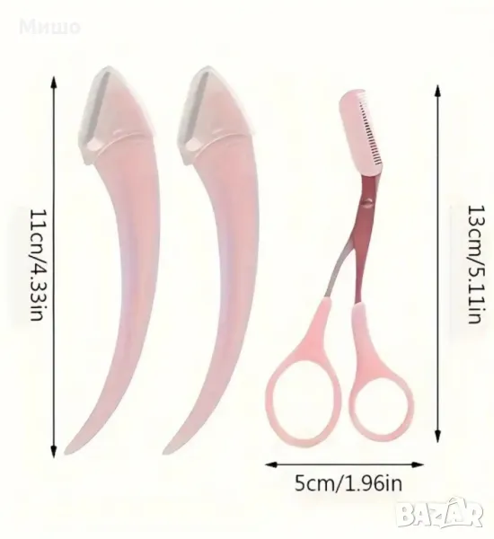 Комплект тример за вежди, извито ножче за вежди, ножица за вежди с гребен, ножче с дълга дръжка → Обява 46898389