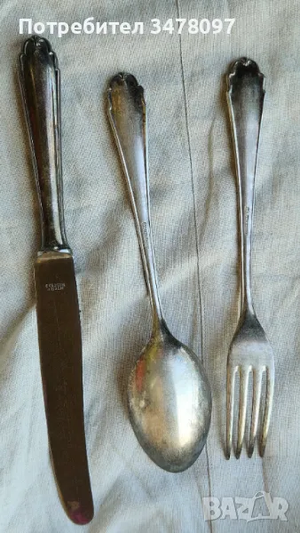 Vintage немски Bruckmann 90 лъжица, 21см, вилица, нож.