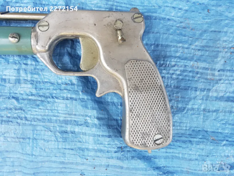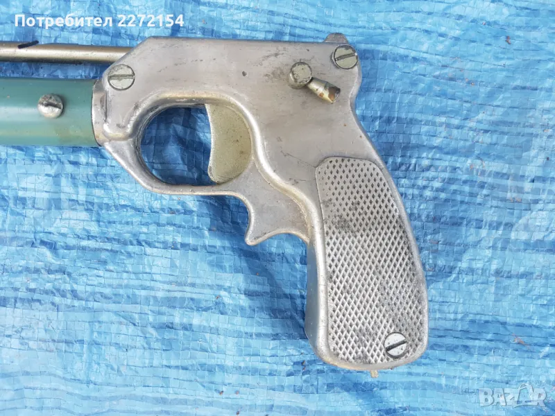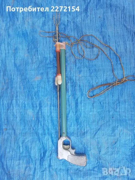 СССР качествено производство, нов неупотребяван. До преди 1 година ластиците му бяха увити в найлони с талк,свалих ги преди море,но си ударих крак и не го ползвах. Стоял е само в стая. Спусъкът му може да се блокира. Отзад на дръжката има мерник.Обща дължина 70 см,на стрелата 60,на въжето,което издържа до 50 кг, 3 метра. Харпунът е здрав и годен за дълга употреба. И съм 50/50 % дали да го продавам,просто винаги ще уцели мишената!