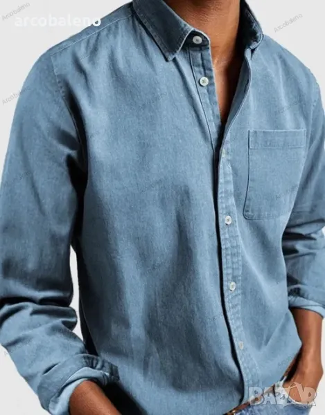 Мъжка риза с дълъг ръкав и ревер, 10цвята