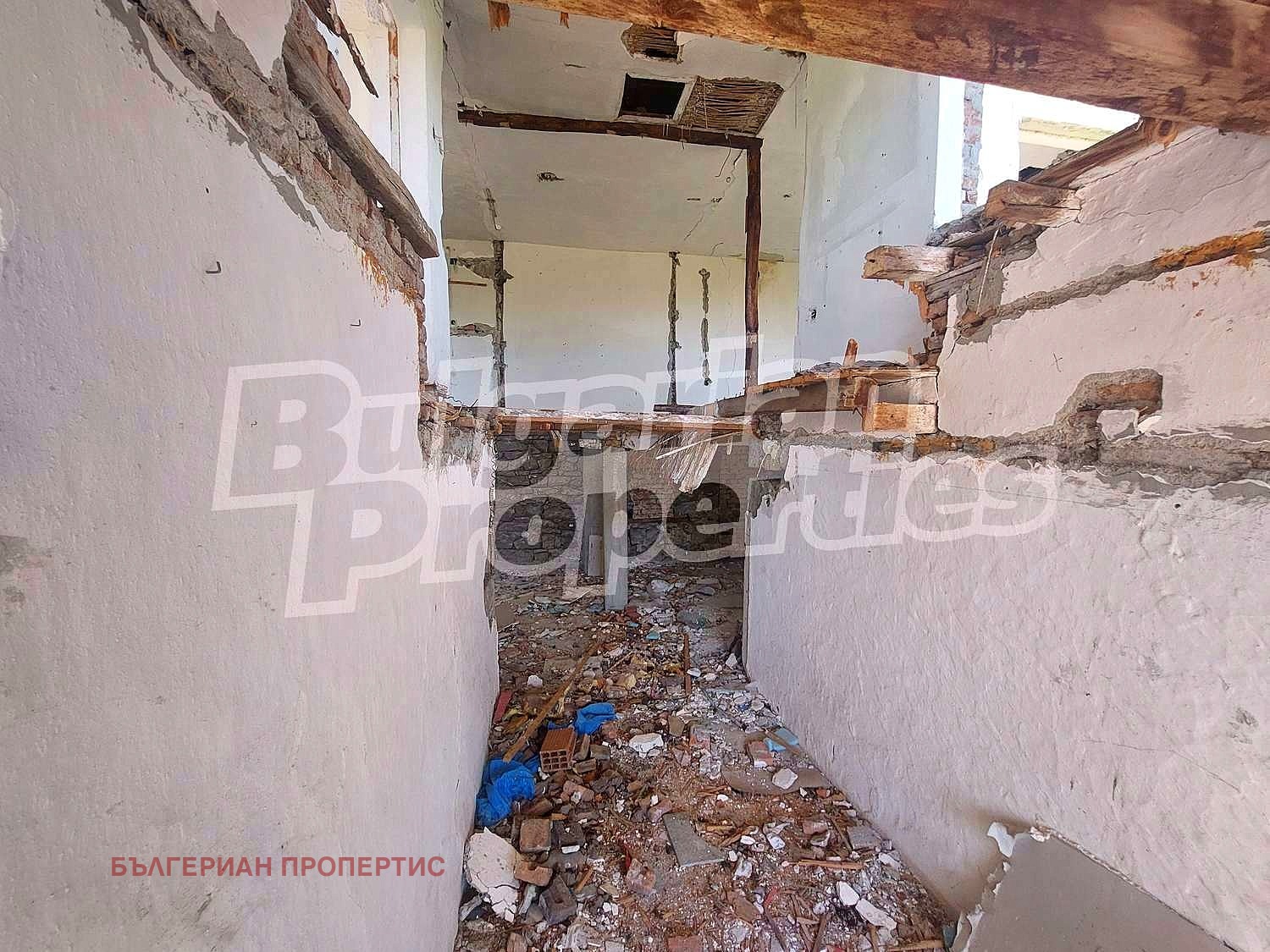 Къщата е на два етажа по 50 кв.м. на етаж, за тотален ремонт, но със здрави каменни основи.