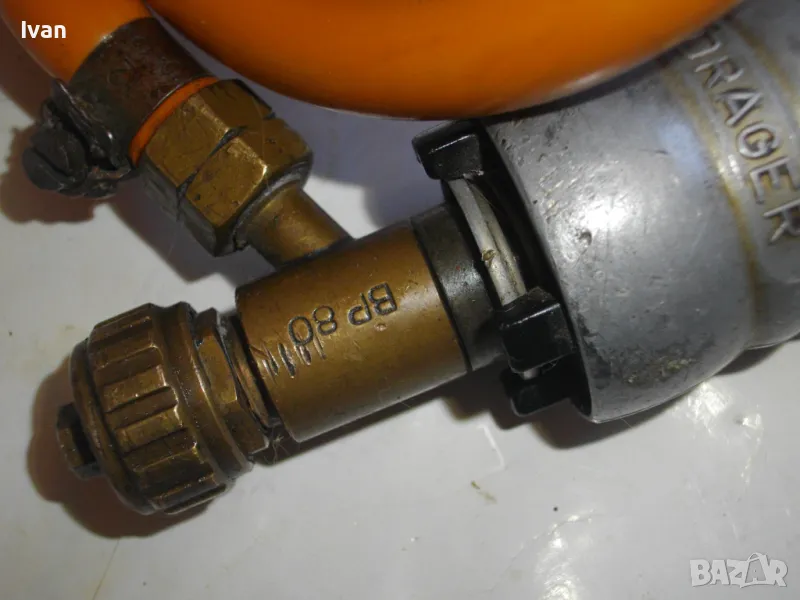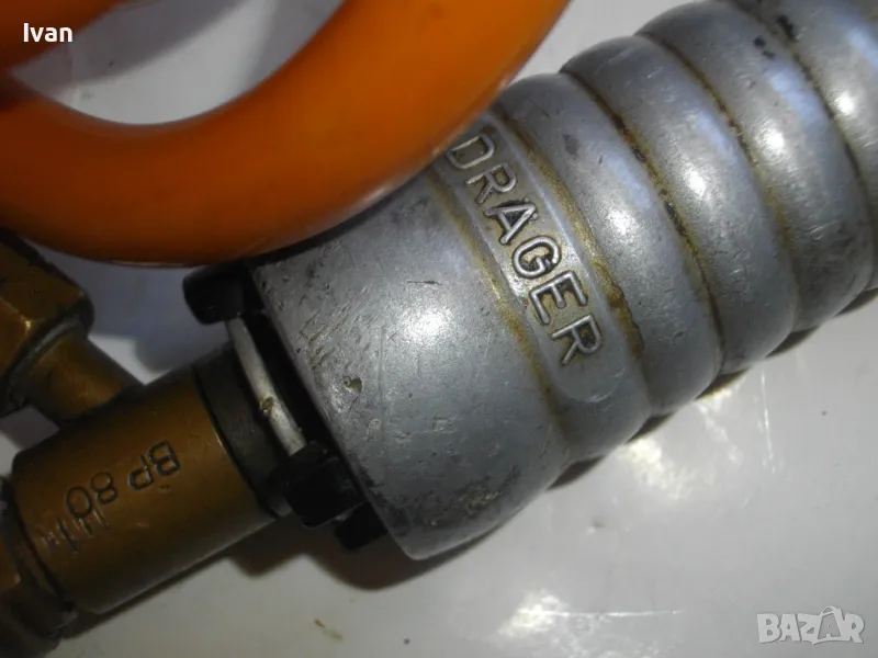 Немско професионално производство от старото качество. Масивна ,изцяло алуминиева. Въртяща се на 360 градуса. Регулатор отзад спирателен кран бронзови. Бронзово рамо и бронзова контакна дюза ф 18 мм с 1 голяма дупка за пламъка. Марка на горелката - DRAGER.Мяркировки от двете страни на тялото. Дължина 285 мм. Поставен оригинален бронзов щуцер за маркуч със скоба ф 10 мм. Тегло на горелката - 0,5 кг.