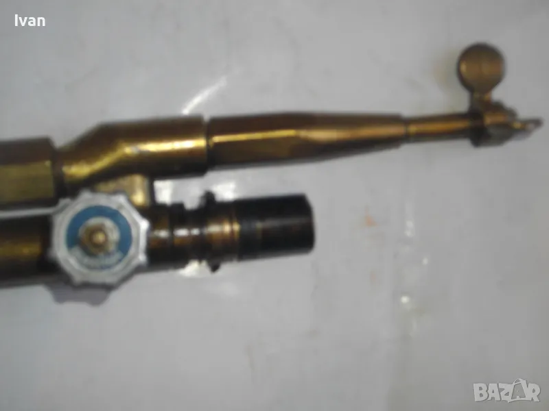 Цялостна дължина 330 мм. Изцяло от бронз, само единият върток е алуминиев, другият заден спирателен кран също е изцяло бронзов. Поставена медна оригинална немска дюза с малък отвор. Марка /модел на дюзата AR 3 100.