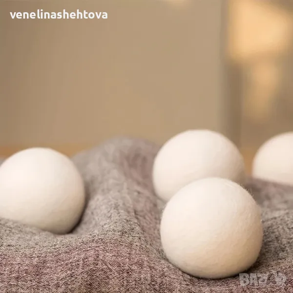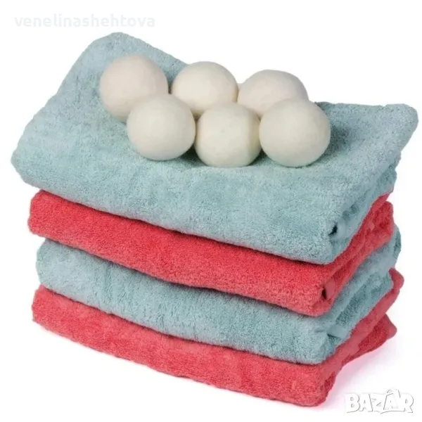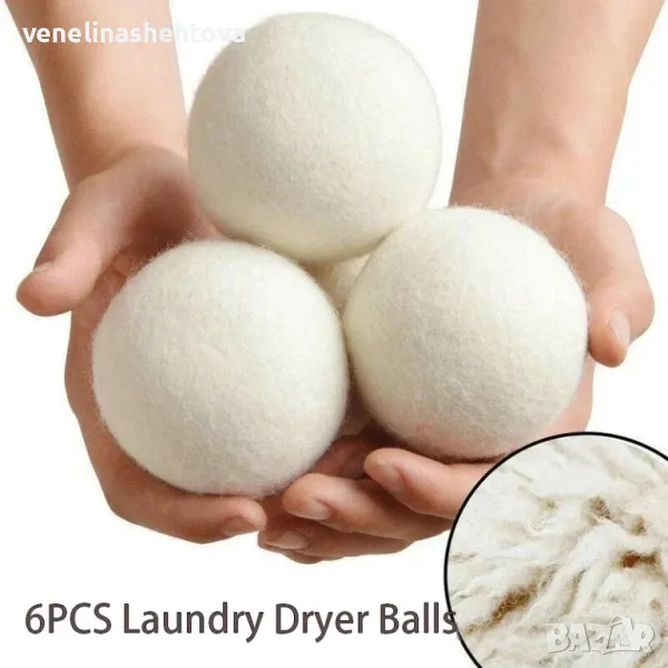 Комплект 6 броя топки за сушилня от новозеландска вълна, която прави прането ви по-меко и гладко без омекотител.