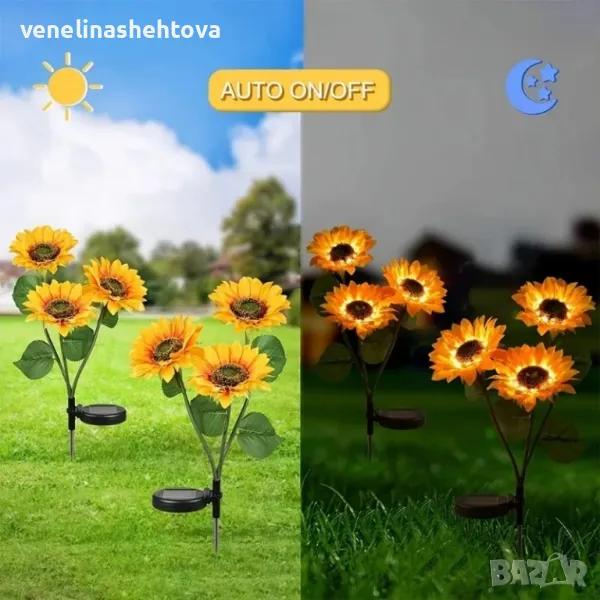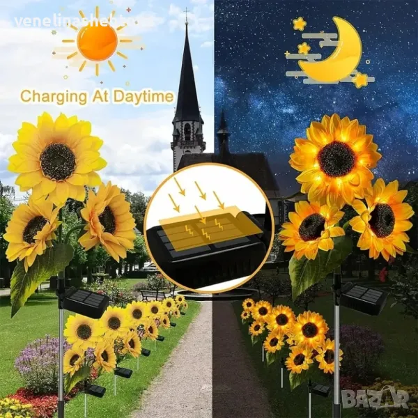 3 цвята Слънчогледи Соларна лампа за градина