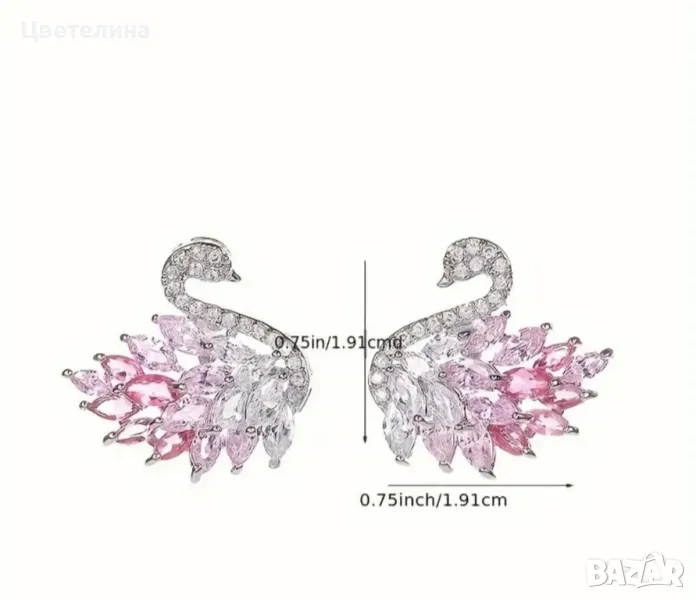 Дамски обеци лебед с цирконий 15 лв. + подарък бонус → Обява 46903039
