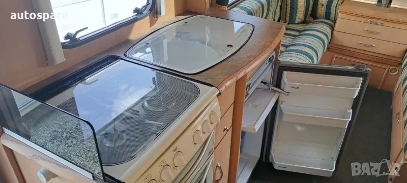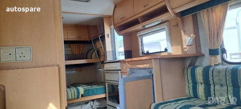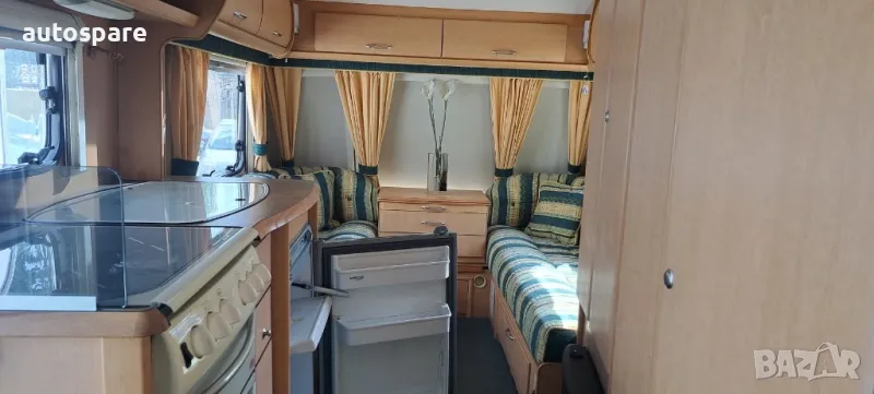 Караваната е в отлично състояние без никакви забележки вътрешни и външни. Напълно обурудвана и готова за използване. Няма никакви течовеи,петна от влага. Голяма спалня отпред.Отзад е с диван,който става на двойно легло плюс единично легло отгоре. Има преграда ,която се затваря. Отопление на газ и ток. Хладилник с камера,фурна,грил,газови котлони в отлично състояние. Антена за телевизор и радио със CD.Напълно обурудвани малка и голяма тента. Контейнери за чиста и отпадна вода. Газова бутилка. Кабели и удължители. Motor mover с дистанционно. Лека и лесна за теглене. Катинар за теглича и покривало, заключване на колелото. Устройство против люлеене. Два вида регисрационни документа. Собствен регистрационнен номер и застраховка за една година. За допълнителна информация и още снимки се свържете с нас.