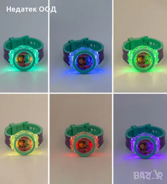 Дигитален ръчен часовник за момиче с лилава каишка и дизайн на Gabby's Dollhouse и цветен пръстен на циферблата. Бутон активира цветната мигаща светлина и автоматично се изключва след известно време. Има час, дата и мека каишка. Работи с 2 батерии тип AG10 (включени). Съдържа инструкции.Това е красив избор за допълване на външния вид на вашето мъниче, както и хубав избор за подарък!