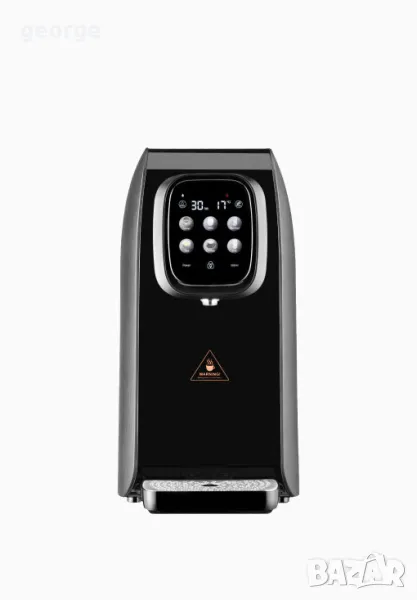 Ново измерение в пречистването на водата. Устройството е снабдено с помпа,която подпомага процеса на филтриране на водата и подава до съда желаното количество. Фантастичен сензорен панел,ще позволи даже малки деца да си наливат вода при запазване на защита от изгаряния. Универсалност-устройството подава винаги филтрирана вода в количество 150,250-300 мл.в температурния диапазон от 25-100 градуса по целзий плюс екстра бутон за бързи 45 градуса и 150 мл. идеално за приготвяне на мляко за бебета. Голям 3 литров резервоар за чешмяна вода позволява да намалим честотата на зареждане на водата в устройството. Целият обем на устройството е около 5 литра.3 литра външен резервоар и 2 литра вътрешен резервоар. Ниска консумация на ел енергия,затопляме толкова вода колкото ни е нужно.Край с чайници и многократно завиране на водата всеки път когато искаме вряща вода. Перфектно устройство за запарване на чайове,които изискват различни температури черен,зелен,бял,билков.Сега ще усетите истинския вкус на чайовете за които запарката се прави в малко по-ниски температури. Наливането на водата може да се изключи всеки момент когато има такава необходимост. Продукта е подготвен за европейски пазар съгласно качеството на водата доставяна да домакинствата. филтър 1 PAC -първоначална филтрация задържаща по-големи механични замърсявания Филтър 2 RO това е филтър за обратна осмоза задържащ тежките метали и минерали които са нежелани за хората. Филтър 3 CS е минерализация с ценни за организма минерали плюс стронций – окончателно пречистване с активен въглен