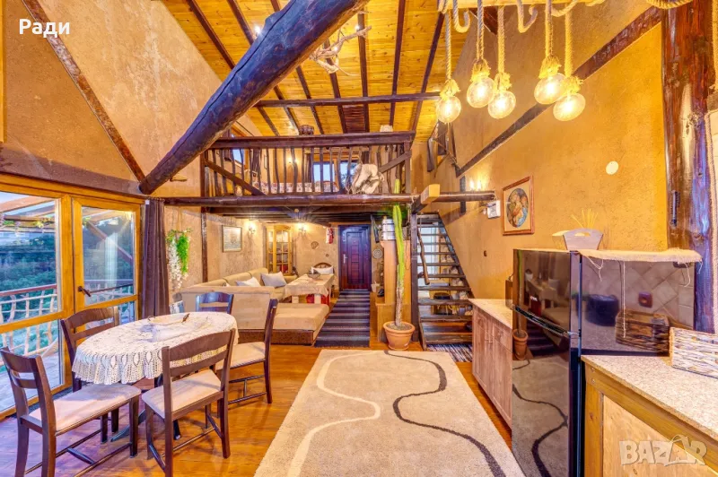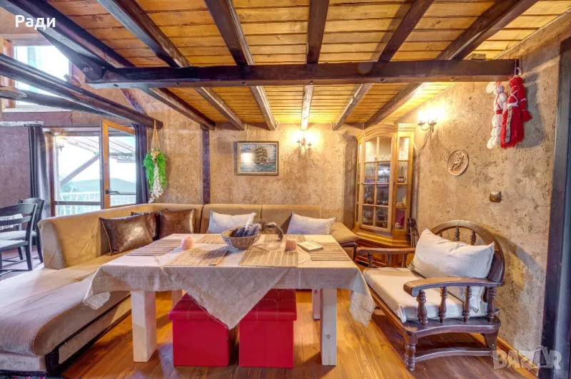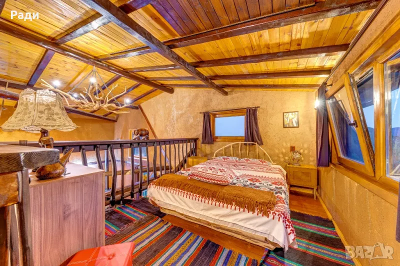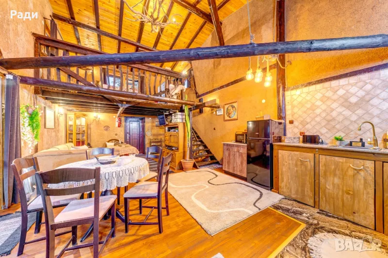 Вилата е с капацитет до 5 човека . Както се вижда , цялото помещение е свободно и без обособени стаи . Първи етаж - голям разтегателен диван , допълнително разтегателно легло /или малък диван / , втори етаж - голяма спалня . Има много добра изолация - зимата вътре е топло , а лятото прохладно .