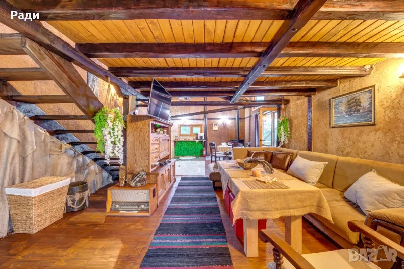The villa can accommodate up to 5 people. As you can see, the whole room is free and without separate rooms. First floor - large sofa bed, additional sofa bed / or small sofa /, second floor - large bedroom. It has very good insulation - it is warm inside in winter and cool in summer.