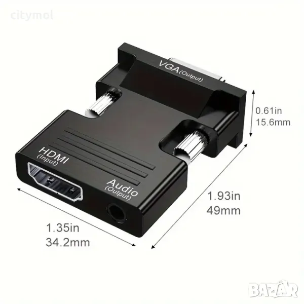 HDMI към VGA адаптер (женскo към мъжкo ) с аудио, 1080P за компютър, лаптоп, проектор