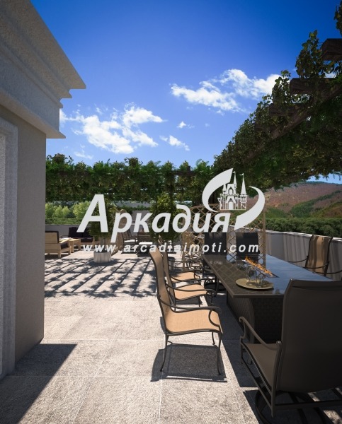 Общата площ на апартамента е 222 кв.м, което включва светла дневна с кухненски бокс 36кв.м, три удобни спални / едната разполага с дрешник / , две бани с тоалетни и три тераси с панорамна гледка към града.