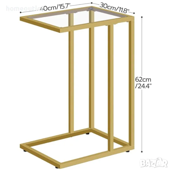 Удебеленият плот от закалено стъкло и златистата метална рамка придават на малката странична масичка красив външен вид и добра здравина за дълъг експлоатационен живот.