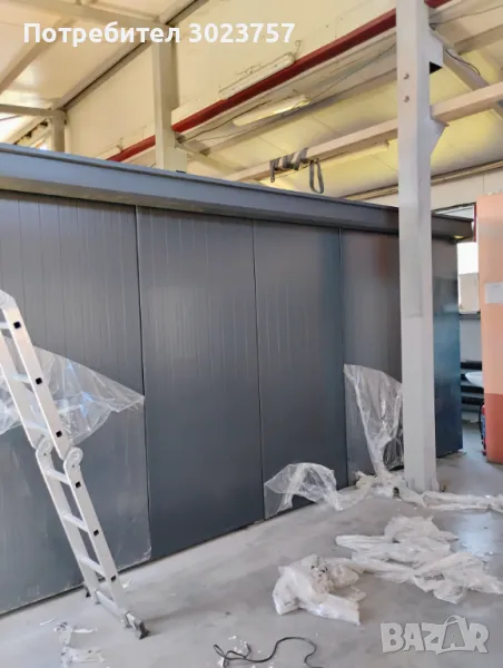 - покрив :сандвич панел 4см,пълнеж полиуретанова пяна с 40кг плътност на кв.м, цвят антрацит