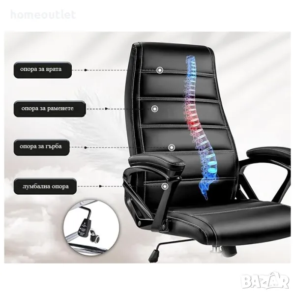 Рационализираната подплатена облегалка, която пасва идеално на човешкия гръбнак, осигурява естествена и удобна поза при дълго стоене.
