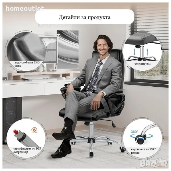 Снабден с SGS-сертифициран газов амортисьор, което позволява да настроите височината на седалката, според индивидуалните си нужди.