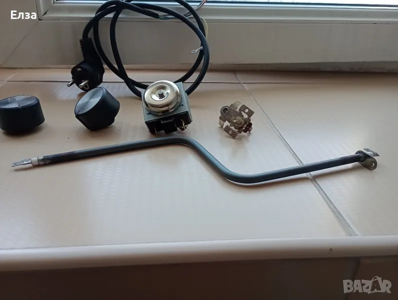 Останаха ми тези здрави части от мини фурната. Нагревателят е един , долен здрав ,защото горният гръмна. Терморелето и часовникът са нови ,купувани пролетта с поръчка .