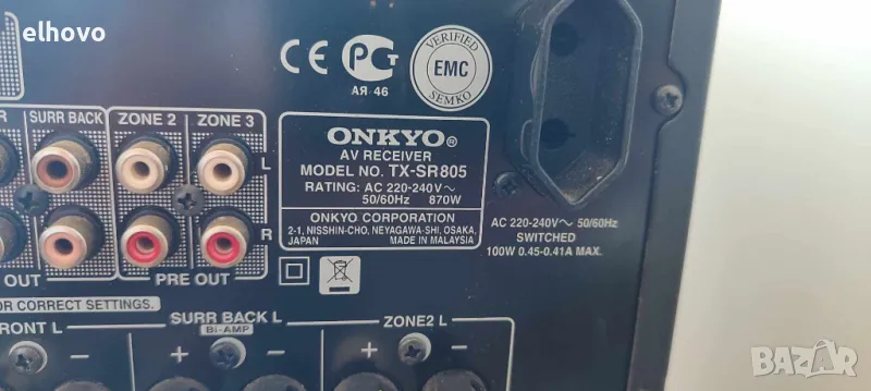 Ресивър Onkyo TX-SR805 → Обява 46906575