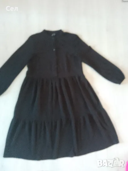 Ефирна ,лека миди черна рокля,с дълъг ръкав.