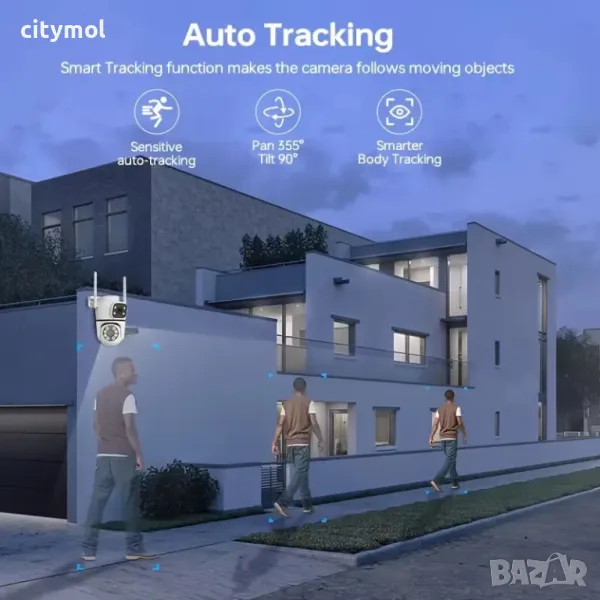 Подходяща за видео наблюдение на места с голяма площ. Чрез приложението може да се контролира ъгъла на завъртане на 355 градуса хоризонтално и 90 градуса вертикално.
