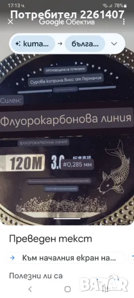 Флурокарбонова линия за риболов, диам. 0,285 мм. 120 метра → Обява 46908565