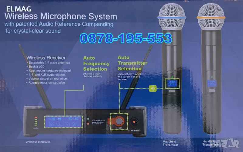 * Безжична микрофонна система с патентовано аудио референтно компандиране за кристално чист звук.